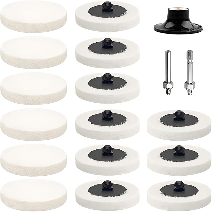YINKE 15枚セット ポリッシャー バフ 50mm 羊毛 フェルトバフ 六角軸 電動ドリル バフ ポリッシャー 車 ガラス研磨用バフ フェルトホイール 電動ドリルに使用