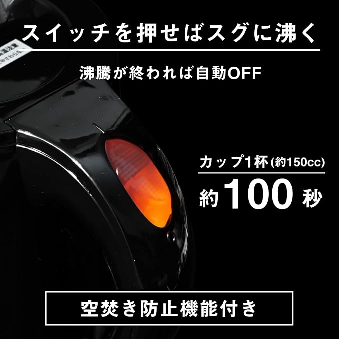 お湯が沸いたら自動でスイッチOFF。ランプの消灯でお知らせします。 必要なときに必要な分お湯を沸かすので経済的。