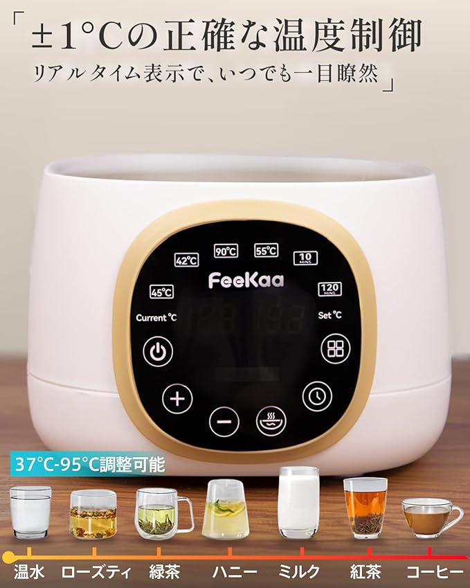 精確な温度制御:ワンタッチで100℃まで沸かせるボタンと、37~95℃までは温度設定ボタンで1℃単位での温度調整が可能です。飲み物に合わせた温度で沸かせば、より美味しい飲み物が楽しめます。調乳ボットは牛乳、水などを精確に目標温度で保ち、最大72時間保温できます。過熱または過冷をを防ぎ、あらゆる赤ちゃんのお好みに合わせます。夜中でお腹が空いた赤ちゃんにも最適です。
