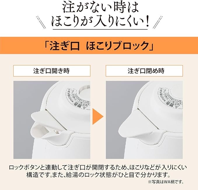 清潔!ほこりの入りにくい「注ぎ口 ほこりブロック」