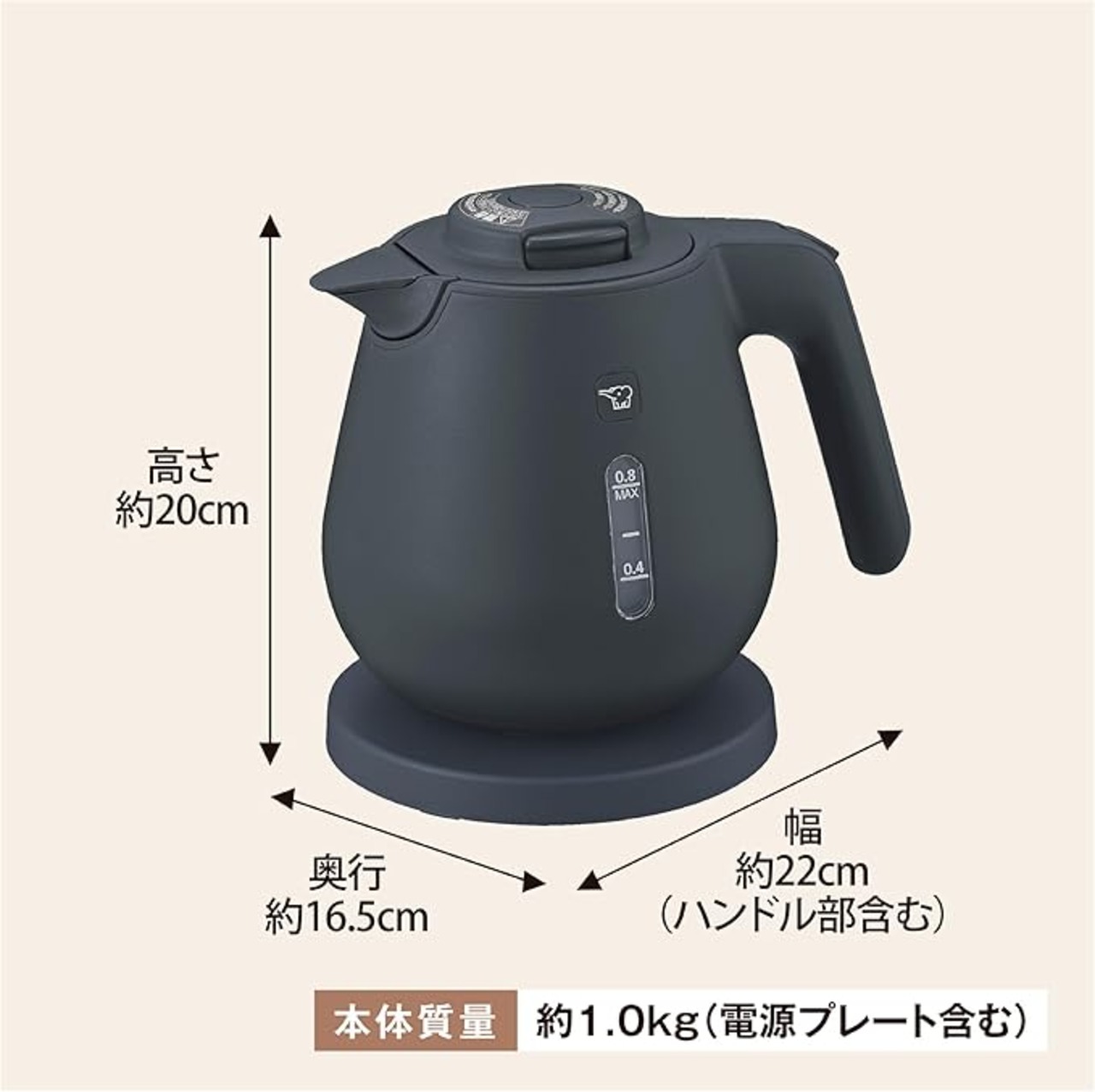 【Amazon.co.jp 限定】象印マホービン 電気ケトル 0.8L コンパクト 安全設計 転倒湯漏れ防止 ほこりブロック ソフトブラック CK-DC08AM-BM