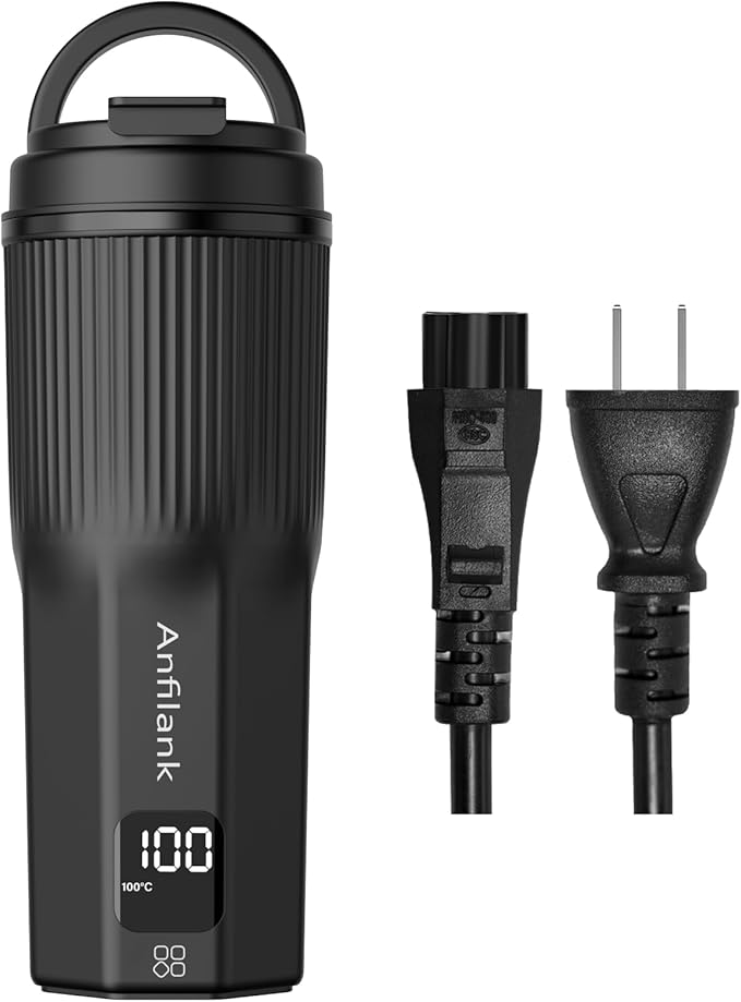 【日本海外兼用】 Anfilank ポータブル電気ケトル 380ml 6段階温度調節 12時間保温 持ち運びケトル トラベル湯沸かし器 三重安全保護 PSE認証済 (コンパクト/ステンレス二重構造/ 4分半沸騰/ 変換プラグ不要)ブラック