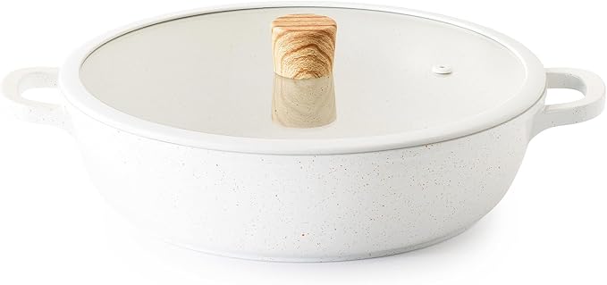 SENSARTE 両手鍋 28cm マーブルコート 卓上鍋 すき焼き鍋 IH対応 ガス対応 一品万能 焦げ付きにくい お手入れ簡単 ガラス蓋付 煮る 焼く 炒める 揚げる しゃぶしゃぶ カレー おでん