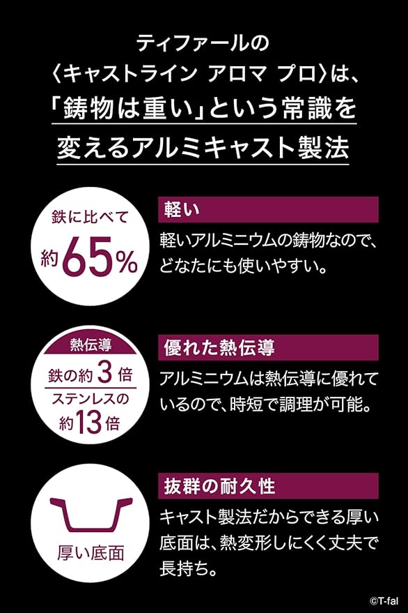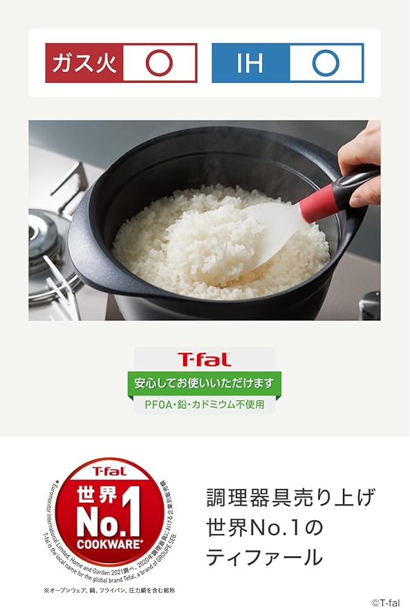 ティファール ご飯鍋 3合炊き 鋳物なのに軽くて使いやすい IH ガス火対応 PFOAなどの有害物質不使用 こびりつきにくさ長持ち 「キャストライン アロマ プロ ライスポット」 ブラック E25195