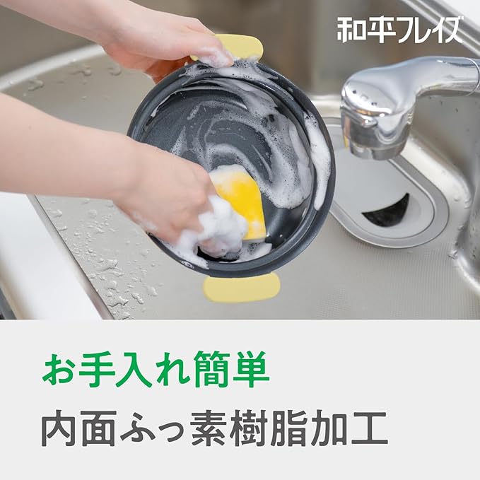 内面はふっ素樹脂加工だから、こびりつきにくくお手入れも簡単。