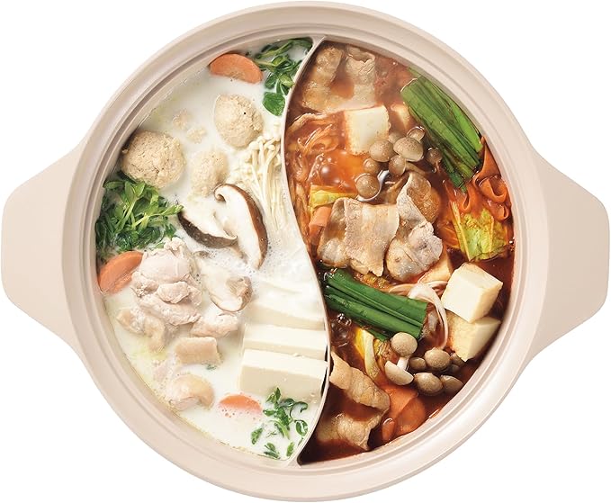 製品サイズ:(約)幅39 奥行32 高さ14.5cm、満水容量/5.6L、鍋の深さ/(約)9.5cm、仕切りの高さ/(約)6.7cm、片側容量/(約)1.8L