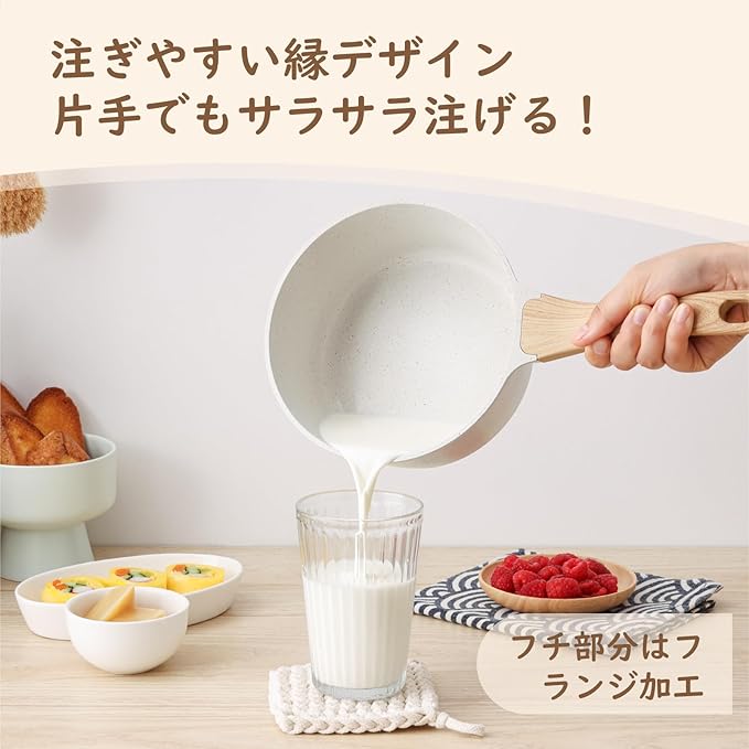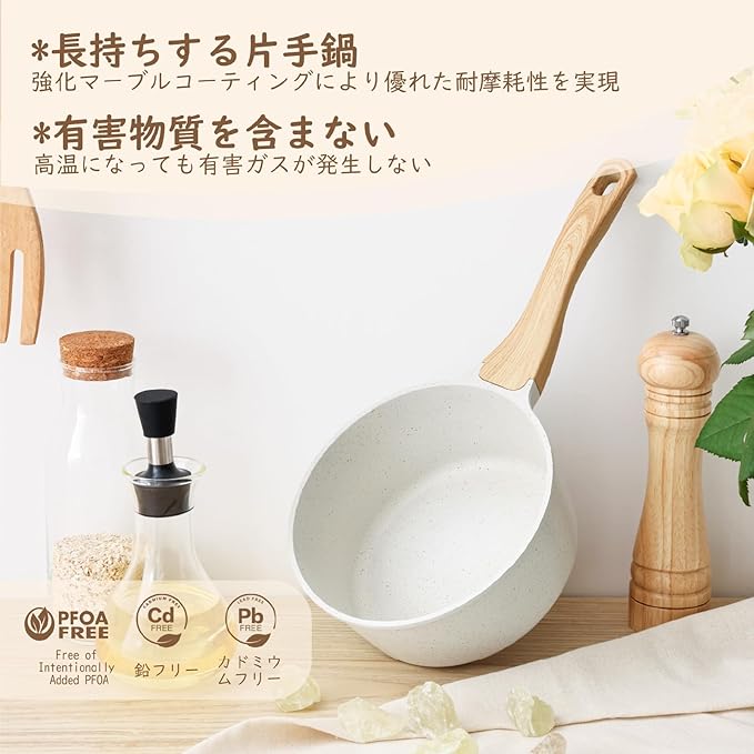 SENSARTE 片手鍋18cm IH/ガス対応 一人鍋 ラーメン鍋 ソースパン ミルクパン 焦げ付かない 小さ鍋 マーブルコート 有害物質不使用 洗いやすい 高熱効率 一年保証 ホワイト