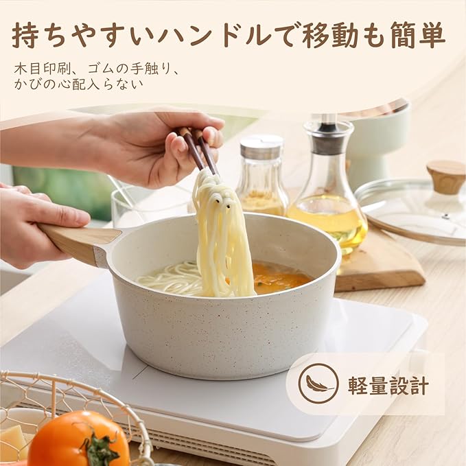 【多機能調理】ラーメン・味噌汁・揚げ物・煮込み・シチューを煮込む、野菜炒めまで万能調理。この片手鍋は、一人暮らしやカップルにぴったりのコンパクトサイズ。