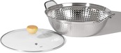 蓋 品名:強化ガラス製器具、強化の種類:全面物理強化、その他の材料:縁リング/ステンレス鋼、つまみ/天然木