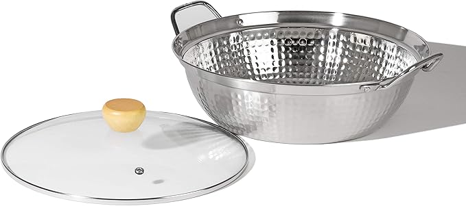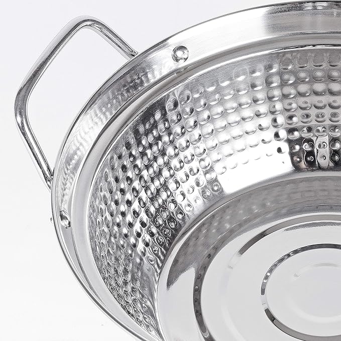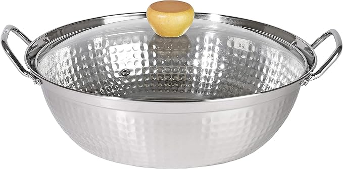 〇高級感ある槌目模様。 〇丈夫なステンレス製、オール熱源に対応。