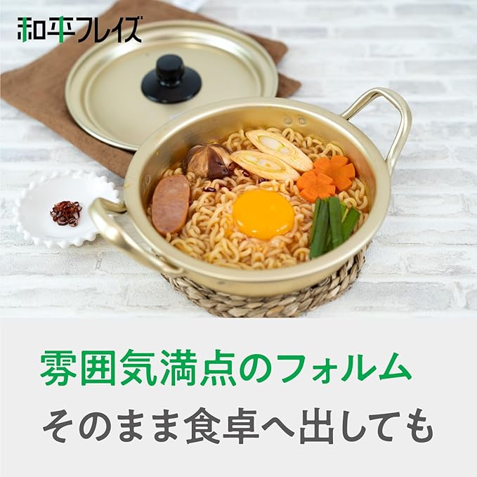 ズボラな方にもぴったり!袋ラーメンをそのまま鍋に入れてちょうどいいサイズ。お好みの具材と合わせて火にかけるだけで、手早く美味しいラーメン鍋を楽しめます。アルミ製なので熱伝導が良く、素早く調理できます。キムチチゲを作るときにもご活用ください。