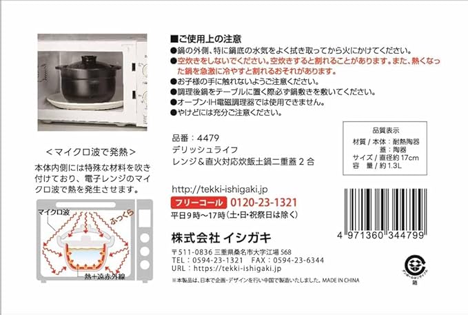 イシガキ DLレンジ&直火対応 炊飯土鍋 二重蓋2合 4479