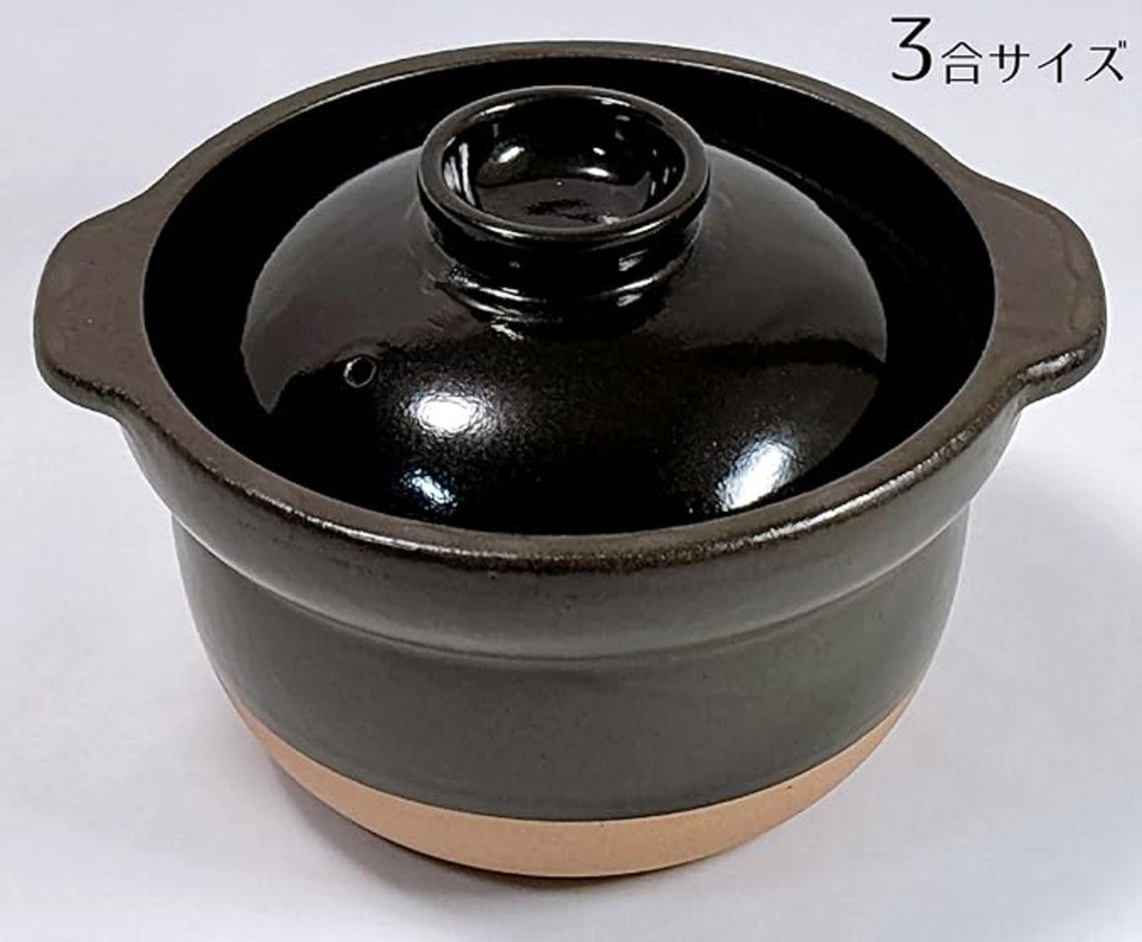 セラミックコーティング炊飯土鍋 ごはん土鍋 3合炊き 日本製 黒色 萬古焼 内山製陶所 厚手 蓄熱設計 火加減いらず お手入れ簡単