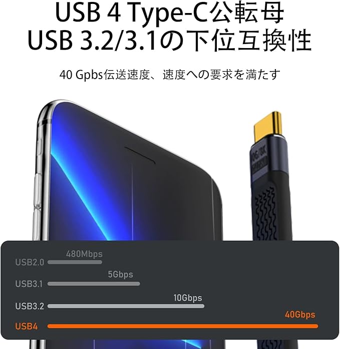 【40Gbpsデータ転送】USB Type C 充電ケーブル短いはusb-c 延長ケーブル40Gbpsのデータ同期転送をサポートし、超高速の大容量データ転送能力により、お気に入りの映画、音楽、そして完全なTV番組を数秒で転送できます。