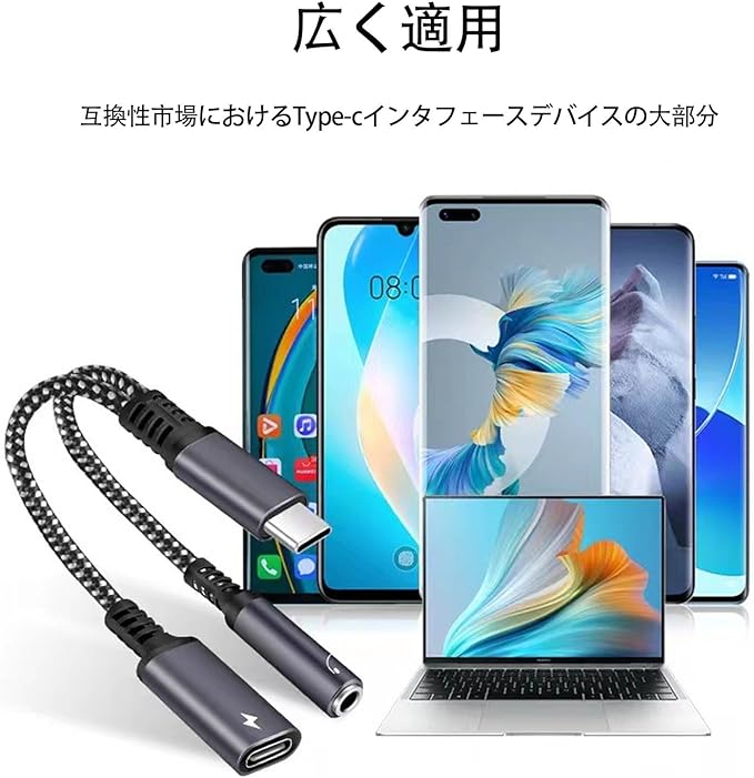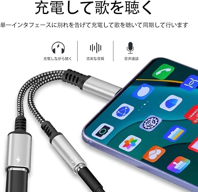 【2-in-1タイプC】このUSB Type-C イヤホン変換アダプタは急速充電中に音楽を聴いたり、ゲームをしたり、電話をかけたり、ビデオを見たりすることができます。注:このタイプc 変換 イヤホンは充電とオーディオにのみ対応しており、データ転送には対応していません。