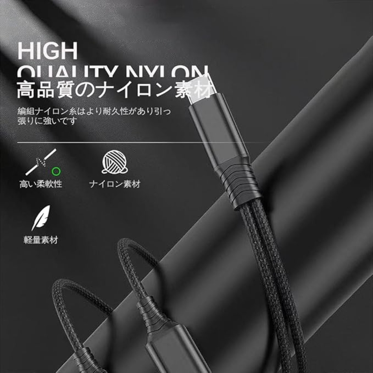 耐久性と柔軟性を兼ね備えた高品質なナイロン製素材で作られた製品。幅広い機種に対応し、簡単に接続できるプラグアンドプレイ機能を備えています。1Phone、Galaxy、Google Pixel、Huaweiなどのスマートフォンと完璧に連携します。