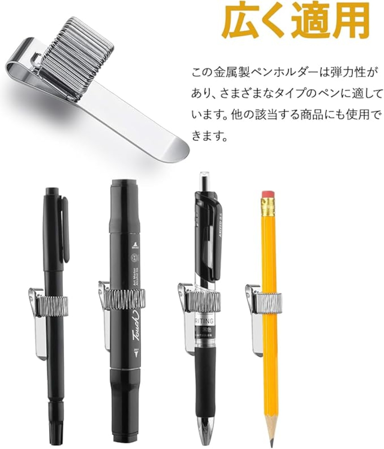 【多用途】:この金属ペンホルダーは弾力性があり、様々なタイプのペンに適している。また、適度な大きさで、他の便利なオブジェクトにも取り付けられ、多目的に使用することができます。