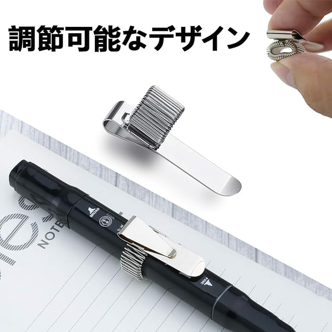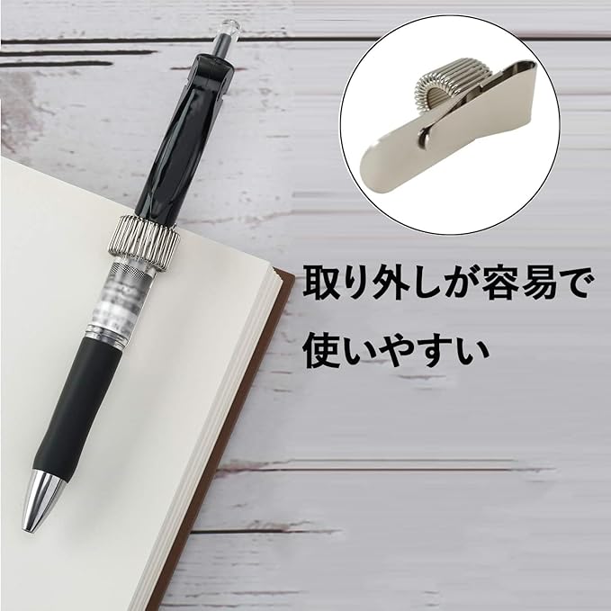 【携帯便利なペンクリップスライダー】:このスライダーは、手帳やノートに挟むだけで、さまざまなサイズのペンを素早く確実に固定できるシンプルで直感的な設計です。