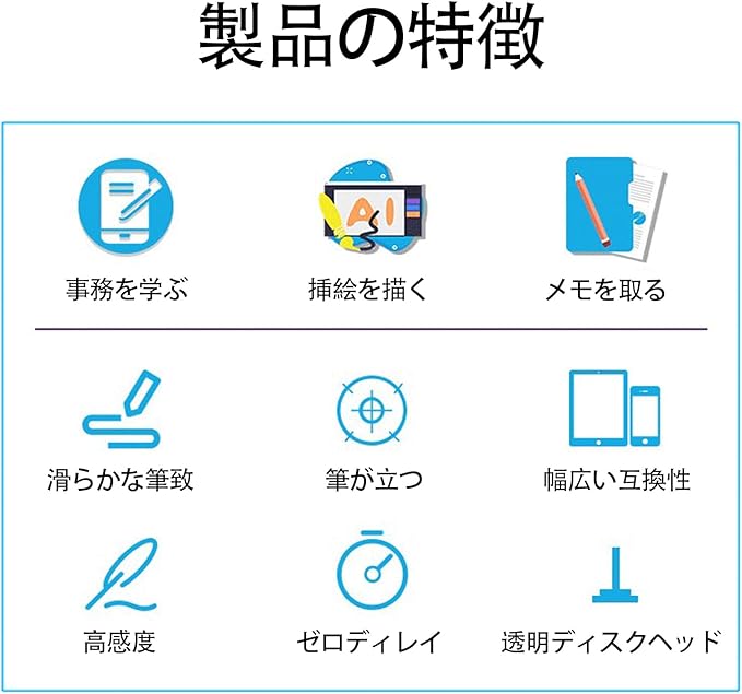 【幅広い互換性】iPad、i-Phone、android端末など、人気のデバイスに対応。ただし、一部の保護フィルムやアプリとの相性によっては、反応が異なる場合があります。(3mm以下の保護フィルムがおすすめです)