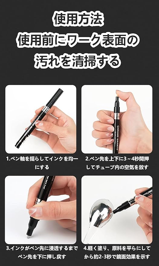 【クローム効果&強力】メタルクロムメッキペンは、ミラー効果を発揮し、見苦しい擦り傷をカバーできます。強力なカバーミラーペイントは、表面の酸化を防ぎ、物体の錆に対する保護層を提供します。