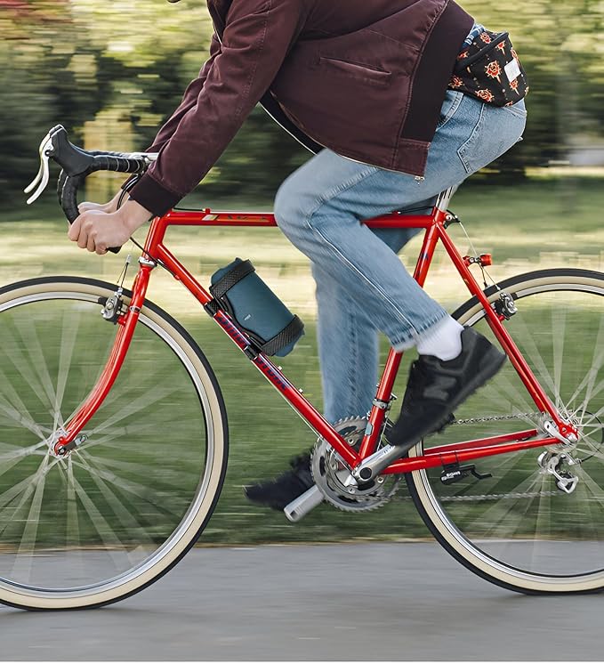 取り付け簡単: 工具は不要。まずマウントを2本の短いストラップで手すりに固定します。次に、スピーカーまたは水筒を2本の長いストラップでマウントに固定します。長いストラップは上下に動かして、スピーカーのボタンを塞がないように位置を調整できます。最後に、インストールを終了します。