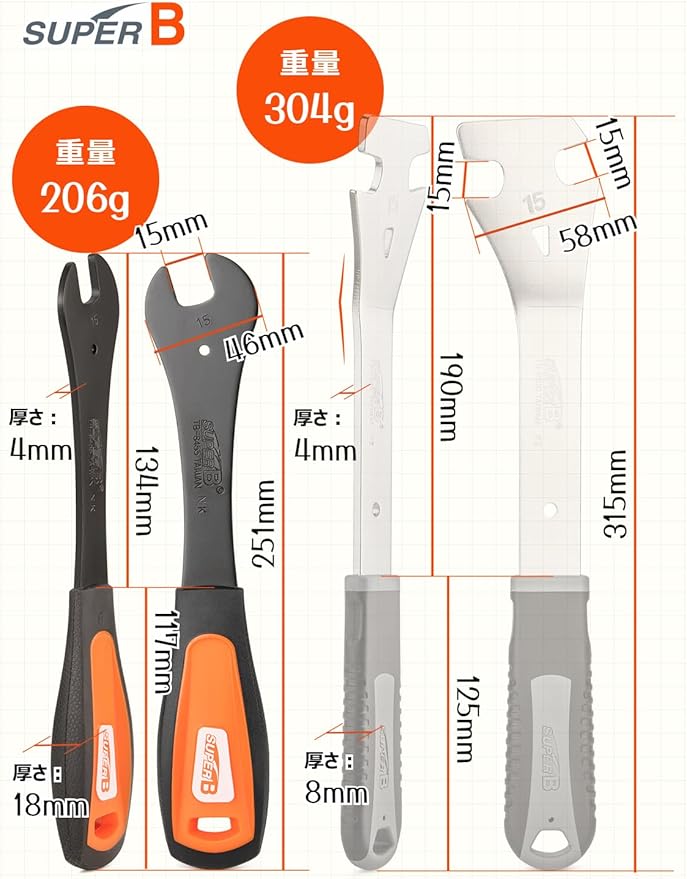 SUPER B 自転車 ペダルレンチ 15mm 薄型 ペダルスパナ ロードバイク・クロスバイクなど用