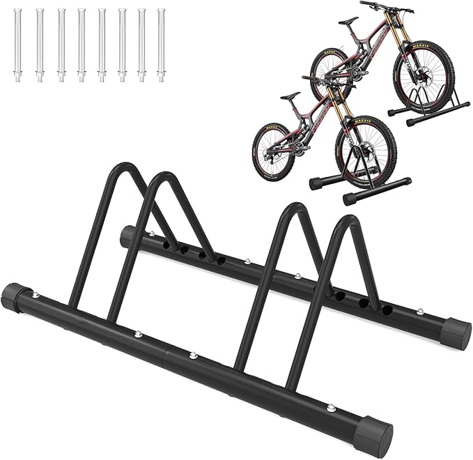 【様々な自転車に適用】 自転車スタンド メンテナンススタンド サイクルスタンド2台用となっております。ロードバイク スタンド 電動自転車 一輪車 などにおすすめです。自転車ディスプレイスタンドにはアンカーボルトで地面に固定できる穴が4か所開いているので 盗難防止対策もとることができます。