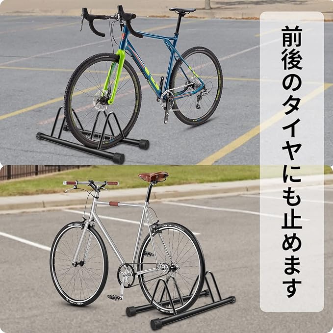 【室外用でき&錆びにくい】高品質なスチール材質で作られた自転車スタンドは耐腐食性や耐摩耗性に優秀で、錆びることなく、長期間綺麗にご使用できます。駐輪方法は自転車の前輪、又は後輪を 駐輪スタンド に差し込みします。アンカーボルトで固定すれば、風が強い室外にも利用できます。