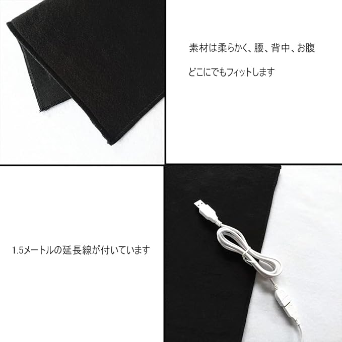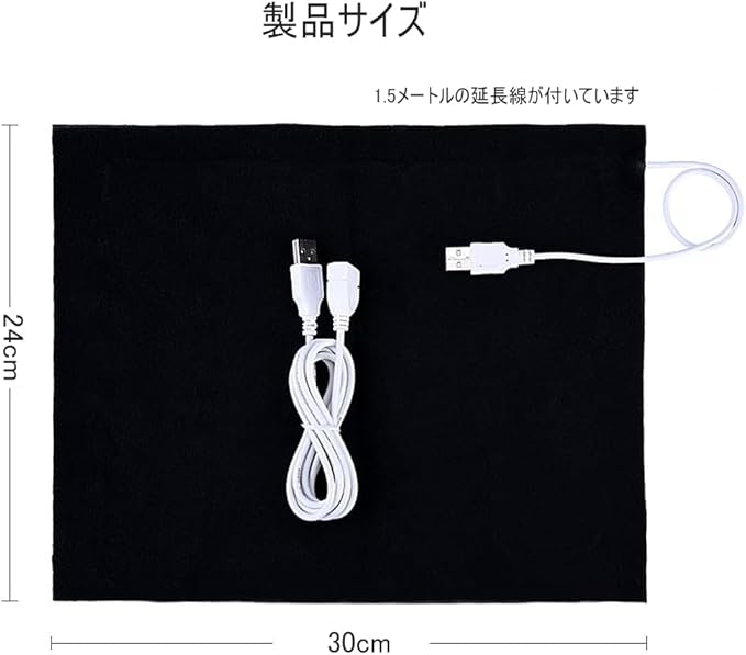 ヒートパッド 35~50℃ 洗える 5V USB式 炭素繊維製 長さ24cm 幅30cm暖房器 登山 釣り 生理 冷え性に対応