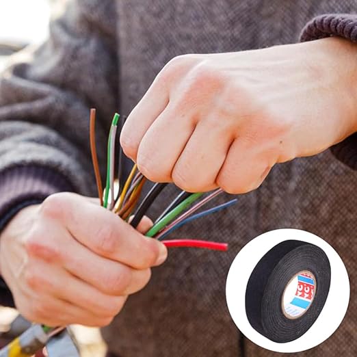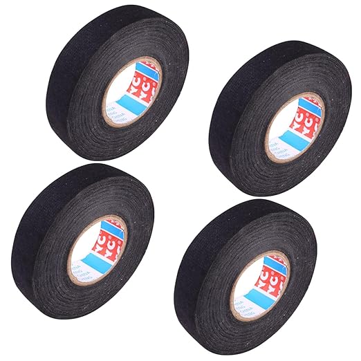 絶縁テープ 自動車用 パック ワイヤーハーネステープ 自動車布テープ 保護結束固定用 19mm x 15m 自己粘着性 耐老化性 耐熱 耐腐食 ノイズリダクション 電線の絶縁保護 黒 4巻