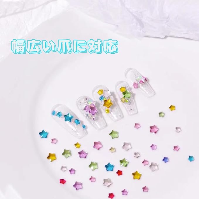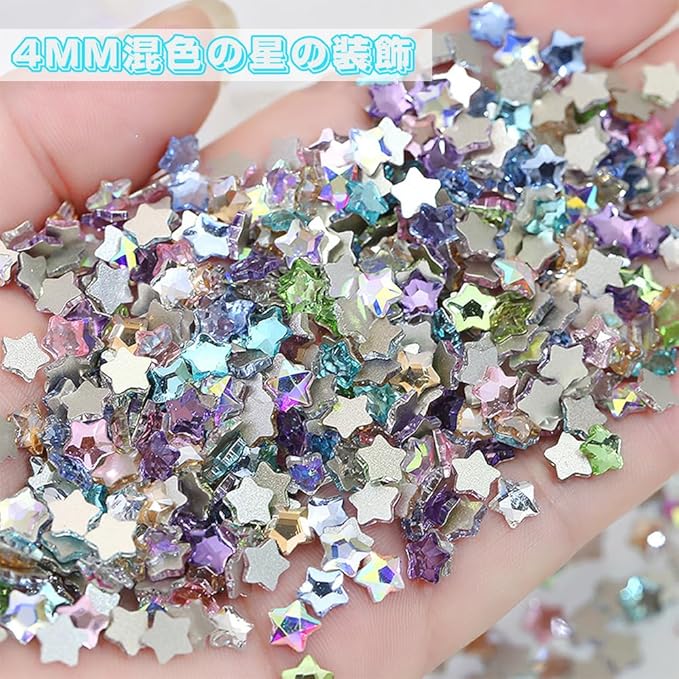 【コンパクトで取り扱いやすいサイズ】:各星型ネイルストーンの直径は4mmで、平らな裏面が指に貼り付けやすく、初心者からプロまで幅広くお使いいただけます。