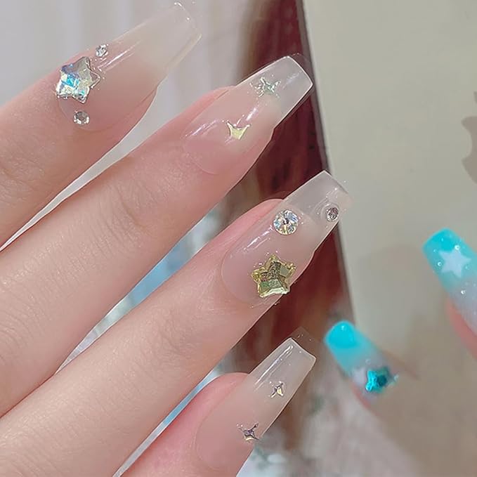 【豊富なカラーバリエーションの星型ネイルデコレーション】:輝く星型ネイルラインストーンは、鮮やかな色合いと輝きで、ネイルデザインの中でファッショナブルなアクセントとなります。