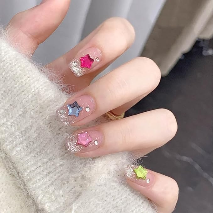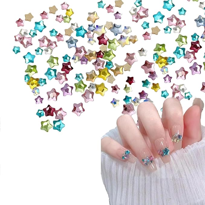 輝く星型ネイルラインストーンは、鮮やかな色合いと輝きで、ネイルデザインの中でファッショナブルなアクセントとなります。