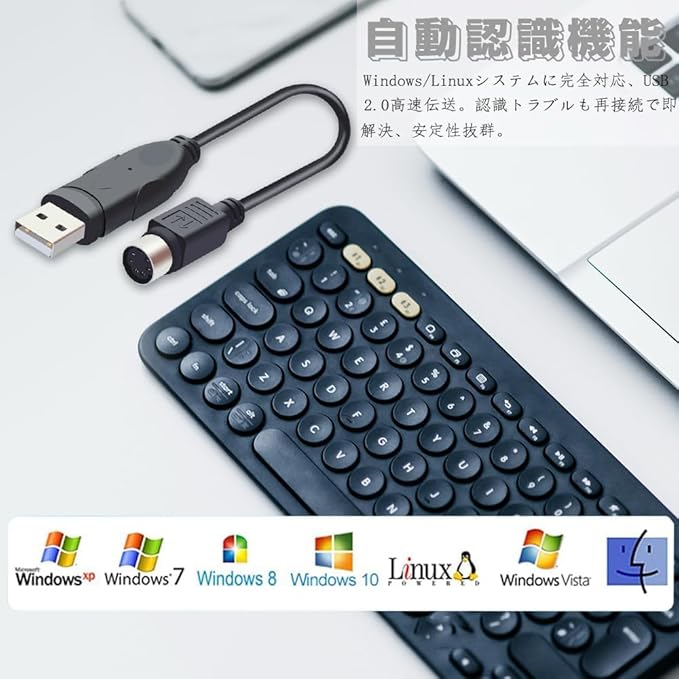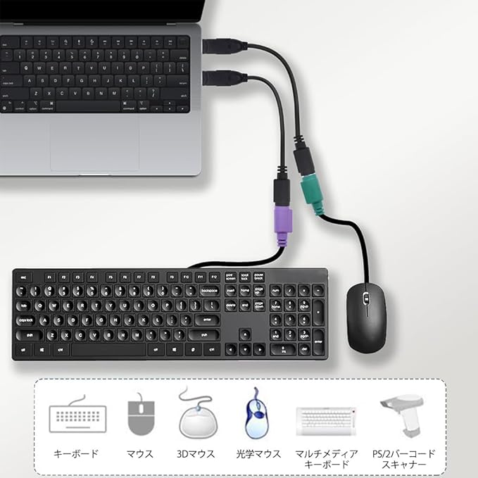 【PS/2からUSBへ、デバイス互換性を簡単アップグレード】:コンバータ1つで、旧式PS/2キーボード/マウス/バーコードリーダーを現代PCのUSBポートに接続。ドライバー不要のプラグ&プレイで旧機材を再生。