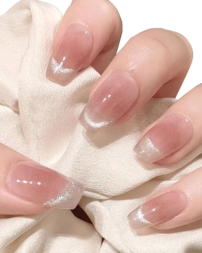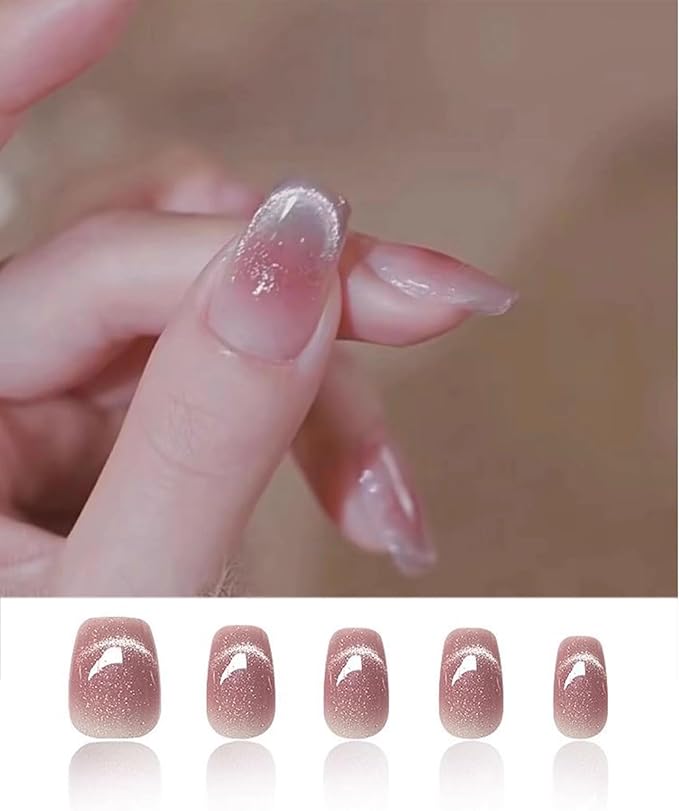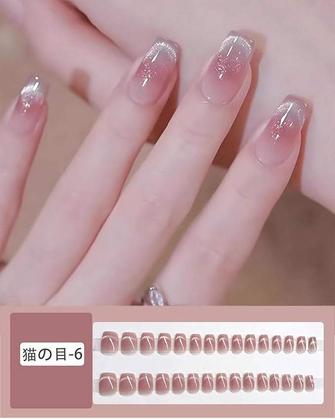 ネイルチップ ショート ピンク 24枚入 つけ爪 短め オーバル 可愛い 付け爪 キャッツアイ マグネット つけづめ ネイルチップ おしゃれ シンプル 韓国 秋冬 人気 おしゃれ かわいい つけ爪 フィンガースーツ 花嫁 光沢 成人式 入学式 卒業式 結婚式 (猫の目-6, M)