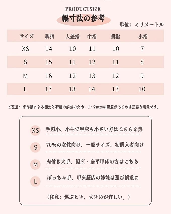 実用性と長持ち:セットには、10種類の異なるサイズのネイルチップが含まれており、4つのサイズから選べるため、さまざまな手の形にぴったりフィットします。高い密着度で、繰り返し使用できるので非常にコストパフォーマンスが高いです。