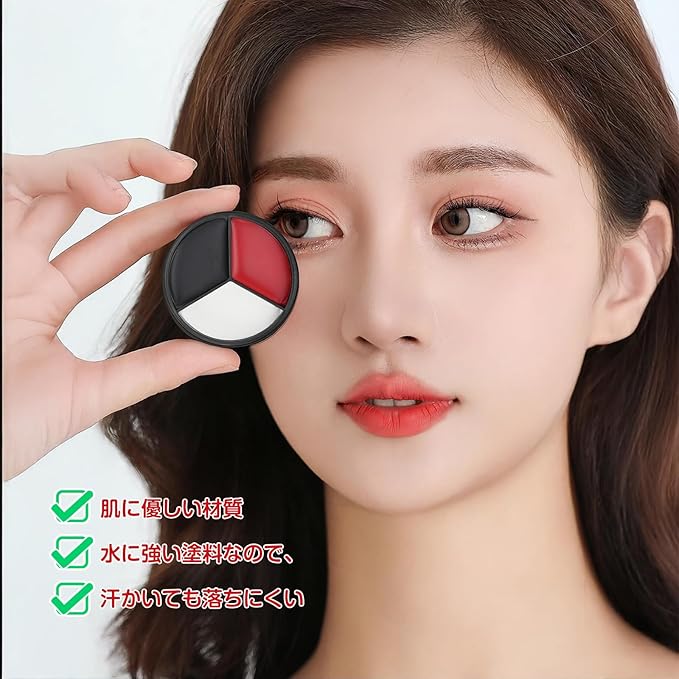 フェイスペイント ボディペイント ドーラン 3色セット 絵の具 顔ペイント マタニティペイント 白塗り 黒 白 赤 安全 無毒 エコ コスプレ 仮装 ハロウィン クリスマス