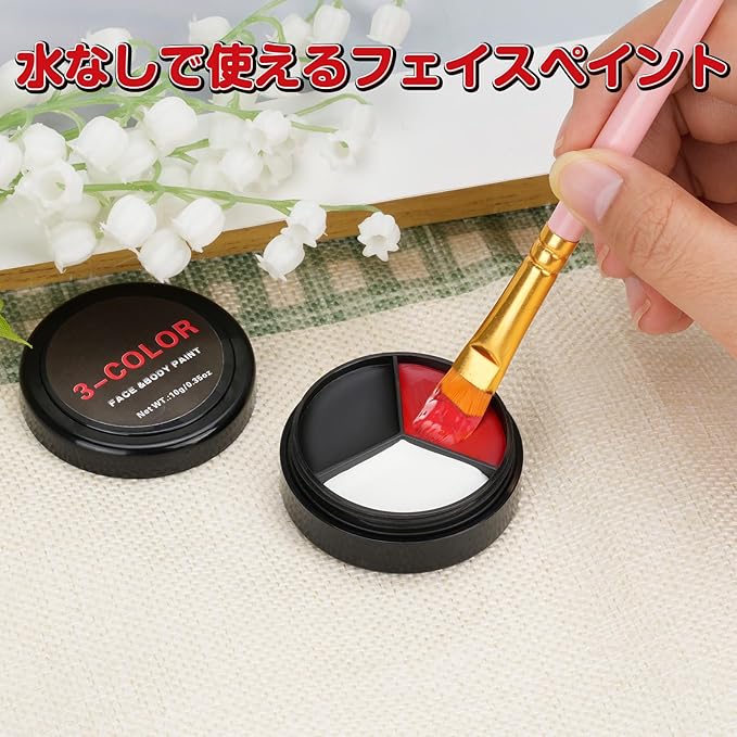 【フェイスペイント3色】フェイスペイントは3色の赤白黒で、黒塗りと白塗りのほか、ボディにバラエティのペイントを行うことができます