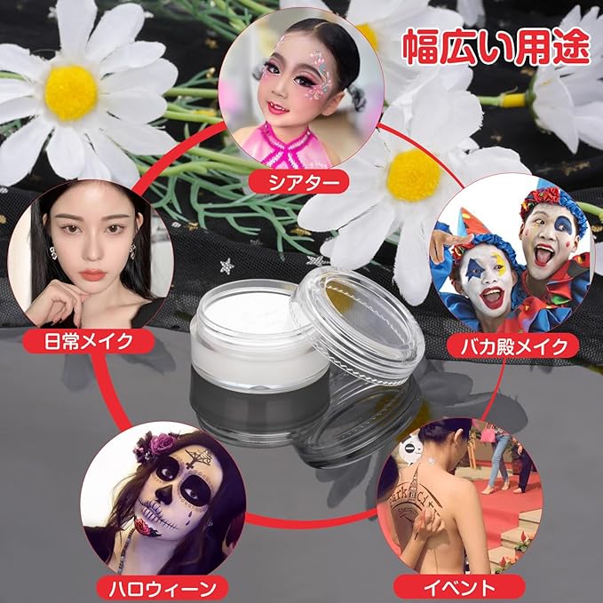 【多用途】ハロウインやクリスマス仮装パーティ、舞台メイク、バカ殿メイク、サッカー観戦、スポーツ応援、マタニティペイントなど様々の場合に大活躍!
