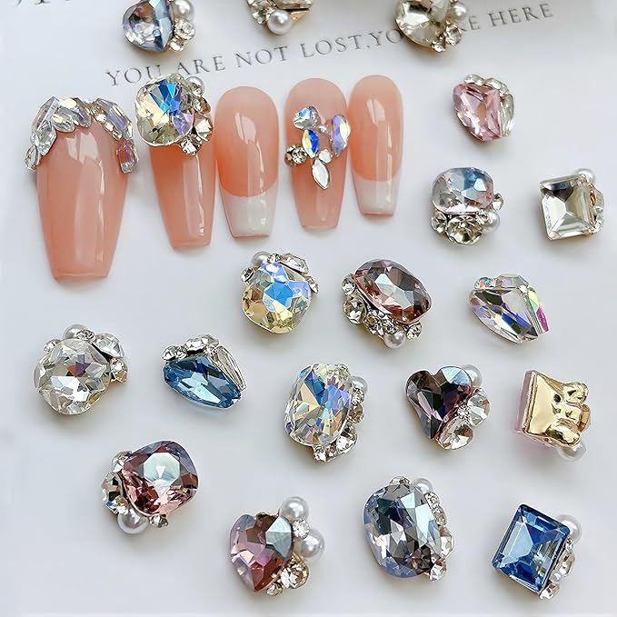 【高品質素材】ネイルストーンは樹脂製で、変形しにくいです。光沢があり、長期間使用できます。ネイルストーンの裏面は合金で包まれており、爪の表面によくフィットすることができます