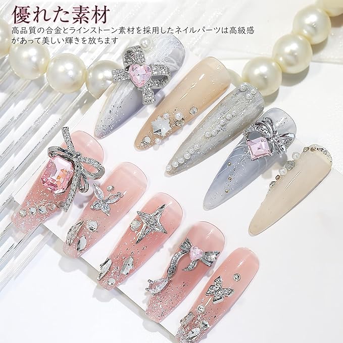 【ミックスの形】さまざまなサイズと形のリボンストーンは色んなスタイルと短い爪にも対応可能です