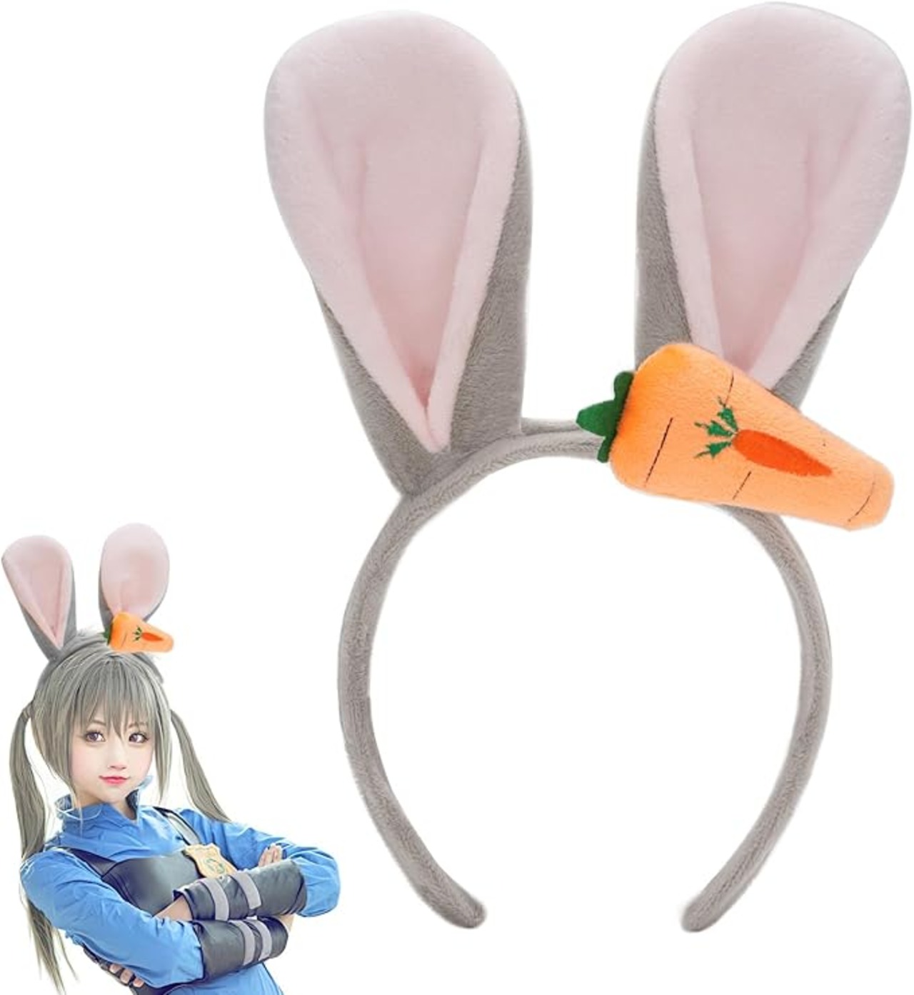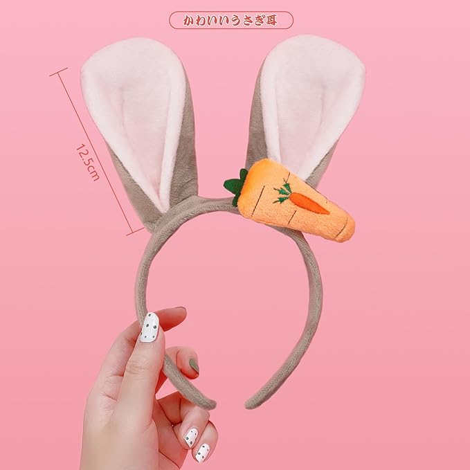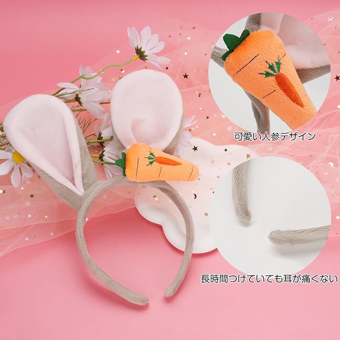 【可愛い人参デザイン】うさぎ耳カチューシャの耳部分はオレンジ色の人参がついて、生き生きとしていて可愛いです