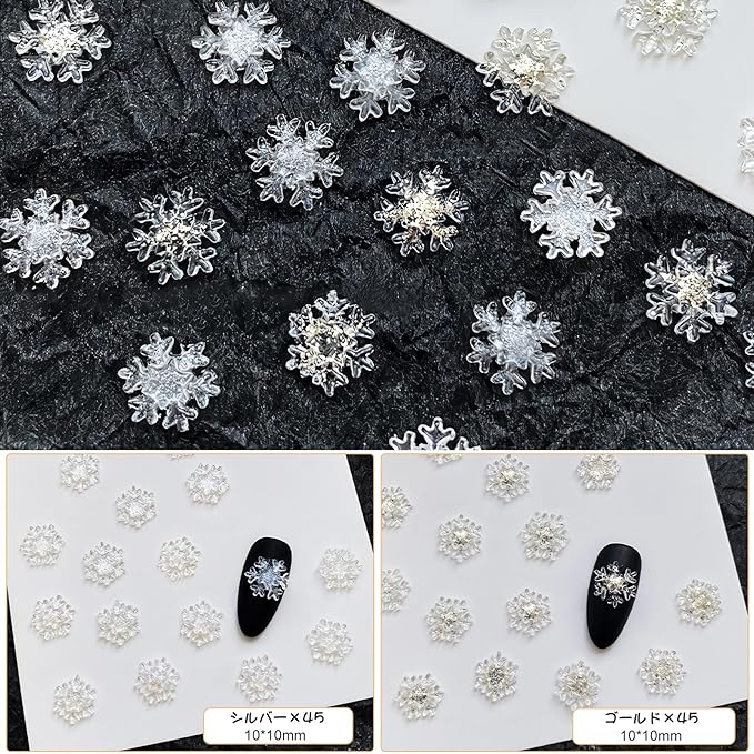 【立体的なデザイン】立体的な雪の結晶のデザインは、ネイルを飾るときによりファッショナブルに見え、装着もやすいです