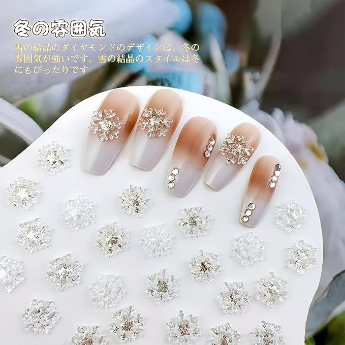 【雪の結晶】繊細な作りとリアルに見える雪の結晶の形で特徴づけられるレジン製ダイヤモンドは、冬の指先飾りに最適です