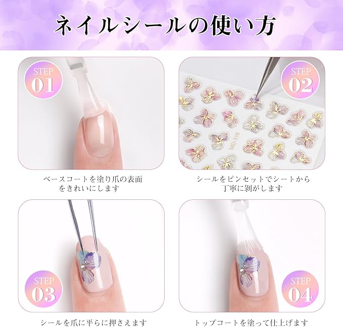【使いやすい】ピンセットで軽くはがして爪に貼るだけなので、初心者でも簡単に使えます。様々なサイズで入っているので使いやすいです