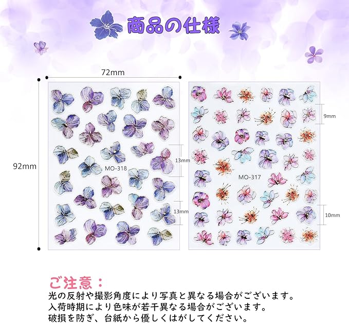 【2枚セット】ネイルシール あじさい2枚入。爪にやさしいPVC素材を使用しており、安心にご購入頂けます