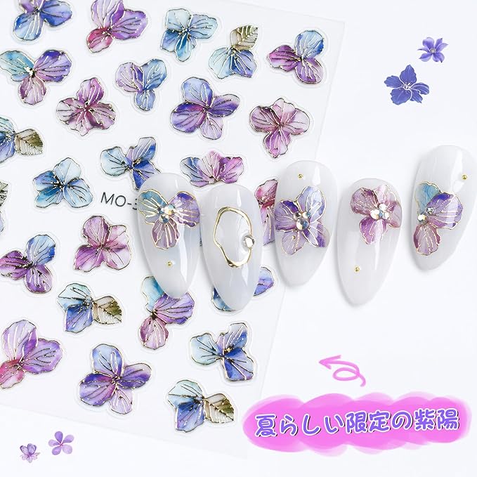 ネイルシール 紫陽花 花 アジサイ 花びら ネイル用シール フラワー 箔押し キラキラ 梅雨 夏 2枚セット