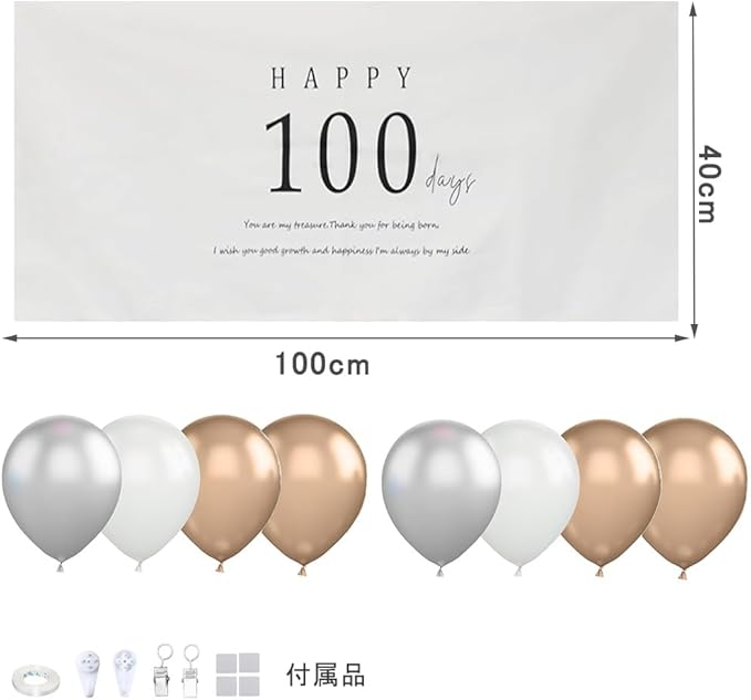 【セット内容物】100日記念タペストリー1点、風船8点。