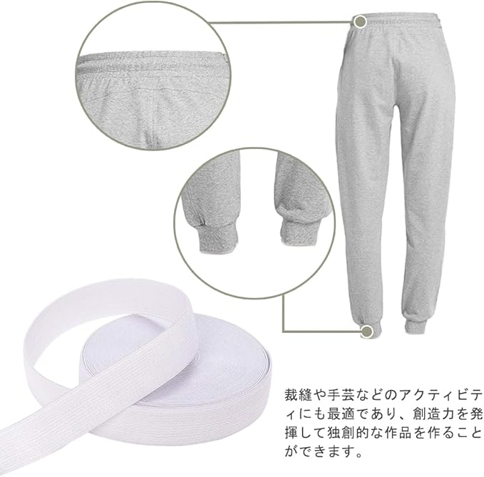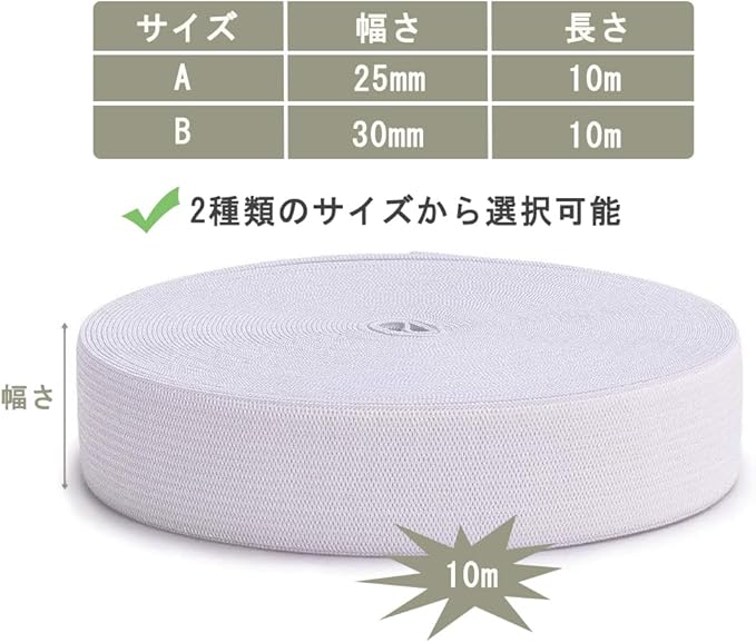 平ゴム 弾性バンド ウエストゴム サイズ 調整 調節 織り 紐 裁縫 手芸 材料 パンツのゴ 裁縫 ツール(25mm*10m,ホワイト)