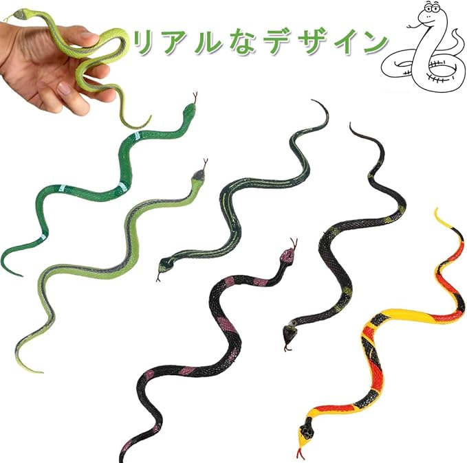 蛇のおもちゃ 6匹 セット リアルなラバースネーク 玩具 ゴム製 リアル いたずらグッズ 猫、鳥対策に